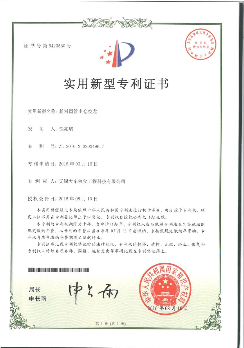 一種糧食粉體的集裝箱卸料發(fā)放與接收系統(tǒng)-實(shí)用新型證書